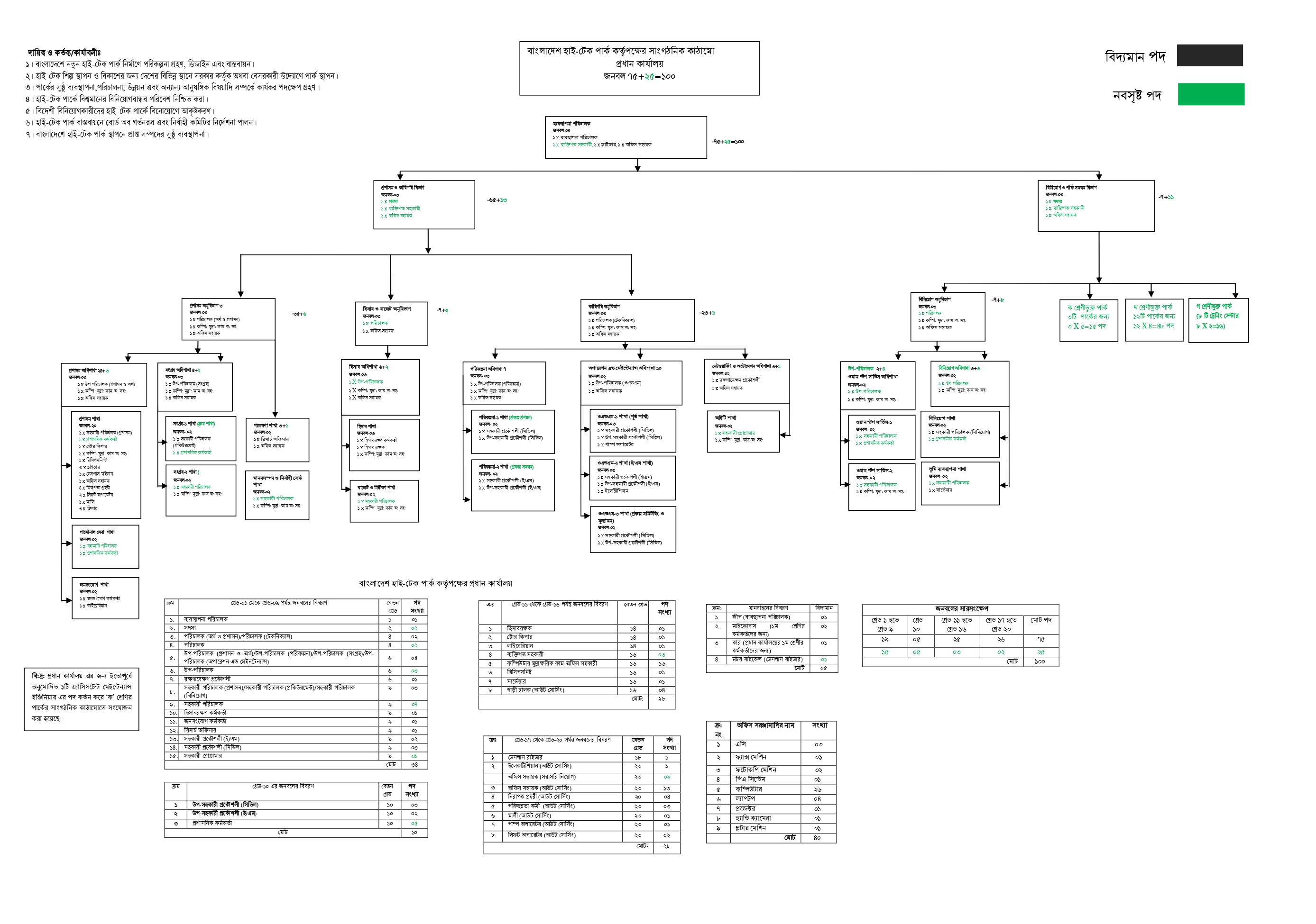 বাংলাদেশ হাই-টেক পার্ক কর্তৃপক্ষের কার্যকারী সাংগঠনিক কাঠামো (বাংলা)।