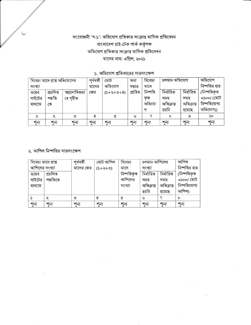 অভিযোগ প্রতিকার ব্যবস্থা (GRS) সংক্রান্ত কর্ম-পরিকল্পনার ১ম ত্রৈমাসিক (জুলাই- সেপ্টেম্বর, ২০২১ পর্যন্ত) অগ্রগতি প্রতিবেদন