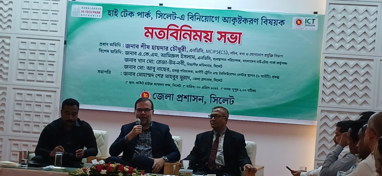 তথ্য ও যোগাযোগ প্রযুক্তি বিভাগের মাননীয় সচিব মহোদয় জনাব শীষ হায়দার চৌধুরী, এনডিসি গত ৩০ এপ্রিল ২০২৫ তারিখে বাংলাদেশ হাই-টেক পার্ক কর্তৃপক্ষ কর্তৃক পরিচালিত দেশের দ্বিতীয় বৃহত্তম সরকারি হাই-টেক পার্ক, সিলেট-এ স্বশরীরে পরিদর্শন করেন এবং হাই-টেক পার্ক সিলেট-এ বিনিয়োগে আকৃষ্টকরণ বিষয়ক মতবিনিময় সভায় যোগদান করেন। | ||