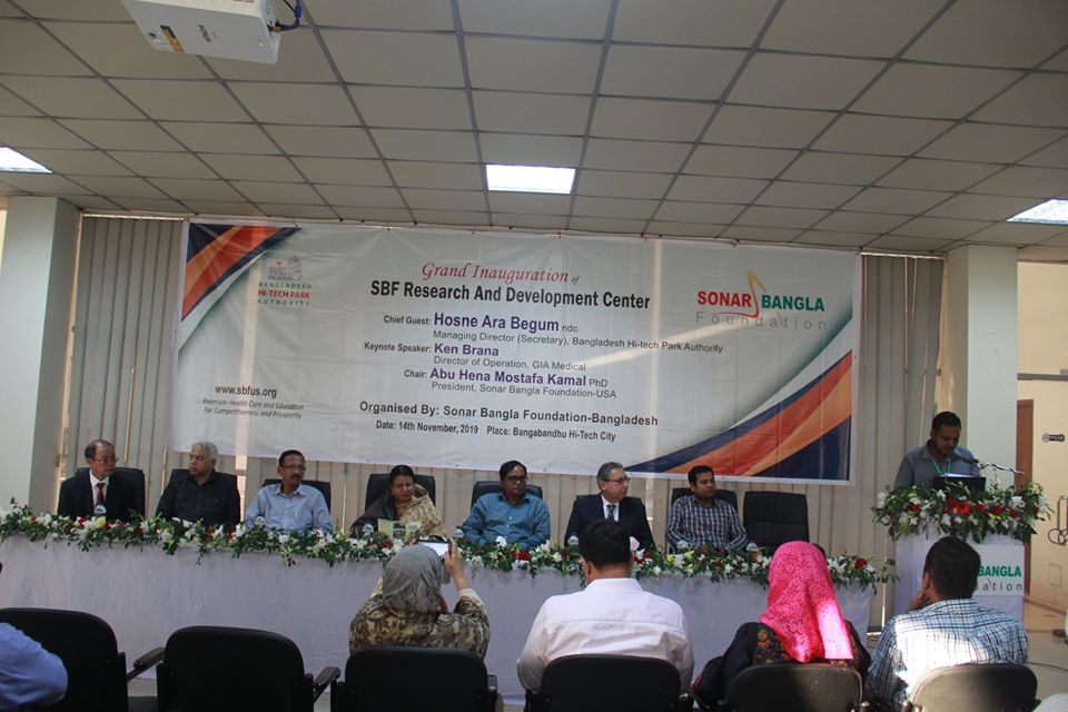 ![]() | গত ১৪/১১/২০১৯ তারিখ (বৃহস্পতিবার) হাই-টেক সিটি, কালিয়াকৈর-এ সোনার বাংলা ফাউন্ডেশন কর্তৃক আয়োজিত Grand Inauguration of SBF Research & Development Center অনুষ্ঠানে বাংলাদেশ হাই-টেক পার্ক কর্তৃপক্ষের ব্যবস্থাপনা পরিচালক (সচিব) জনাব হোসনে আরা বেগম এনডিসি মহোদয় প্রধান অতিথি হিসেবে উপস্থিত ছিলেন। অনুষ্ঠানে সোনার বাংলা ফাউন্ডেশন এর বিভিন্ন কার্যক্রম তুলে ধরে দুটি ভিন্ন প্রেজেন্টেশন দেওয়া হয়। ব্যবস্থাপনা পরিচালক (সচিব) মহোদয় সোনার বাংলা ফাউন্ডেশন এর কার্যক্রমের ভুয়সী প্রসংশা করেন, এবং তাদের পাশে বাংলাদেশ হাই-টেক পার্ক কর্তৃপক্ষ সবসময় থাকবে মর্মে আস্বাস প্রদান করেন। অনুষ্ঠানের আগে তিনি সোনার বাংলা ফাউন্ডেশনের সার্বিক কার্যক্রম পরিদর্শন করেন।