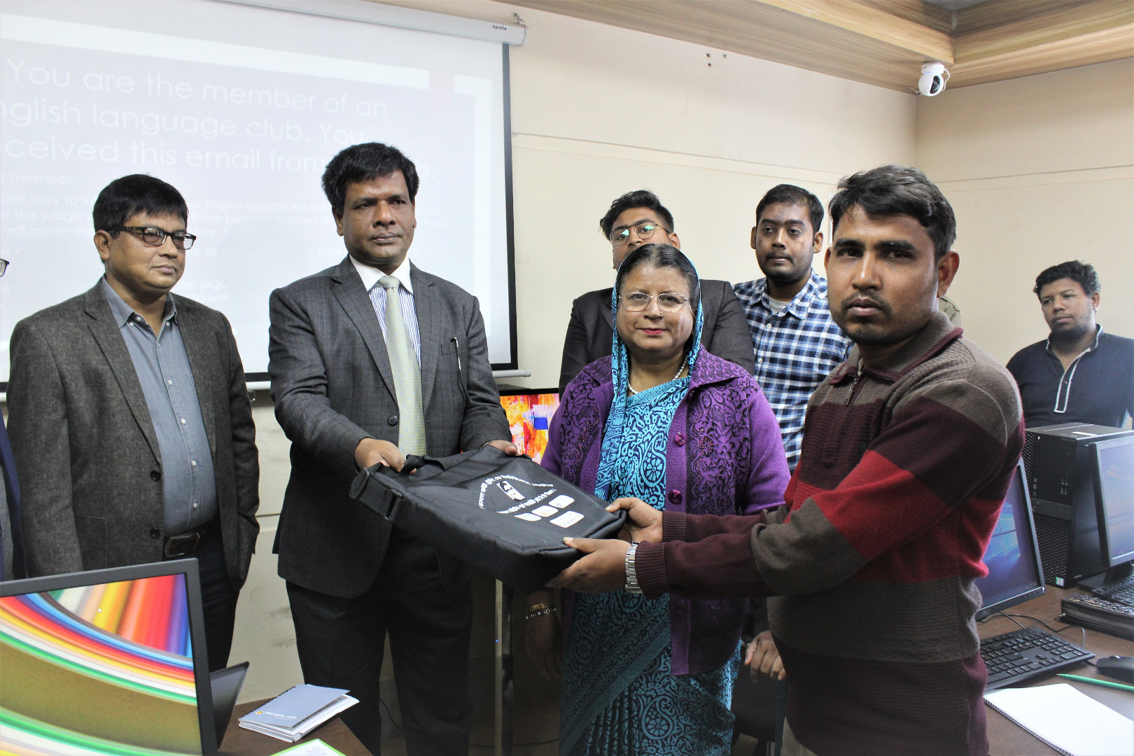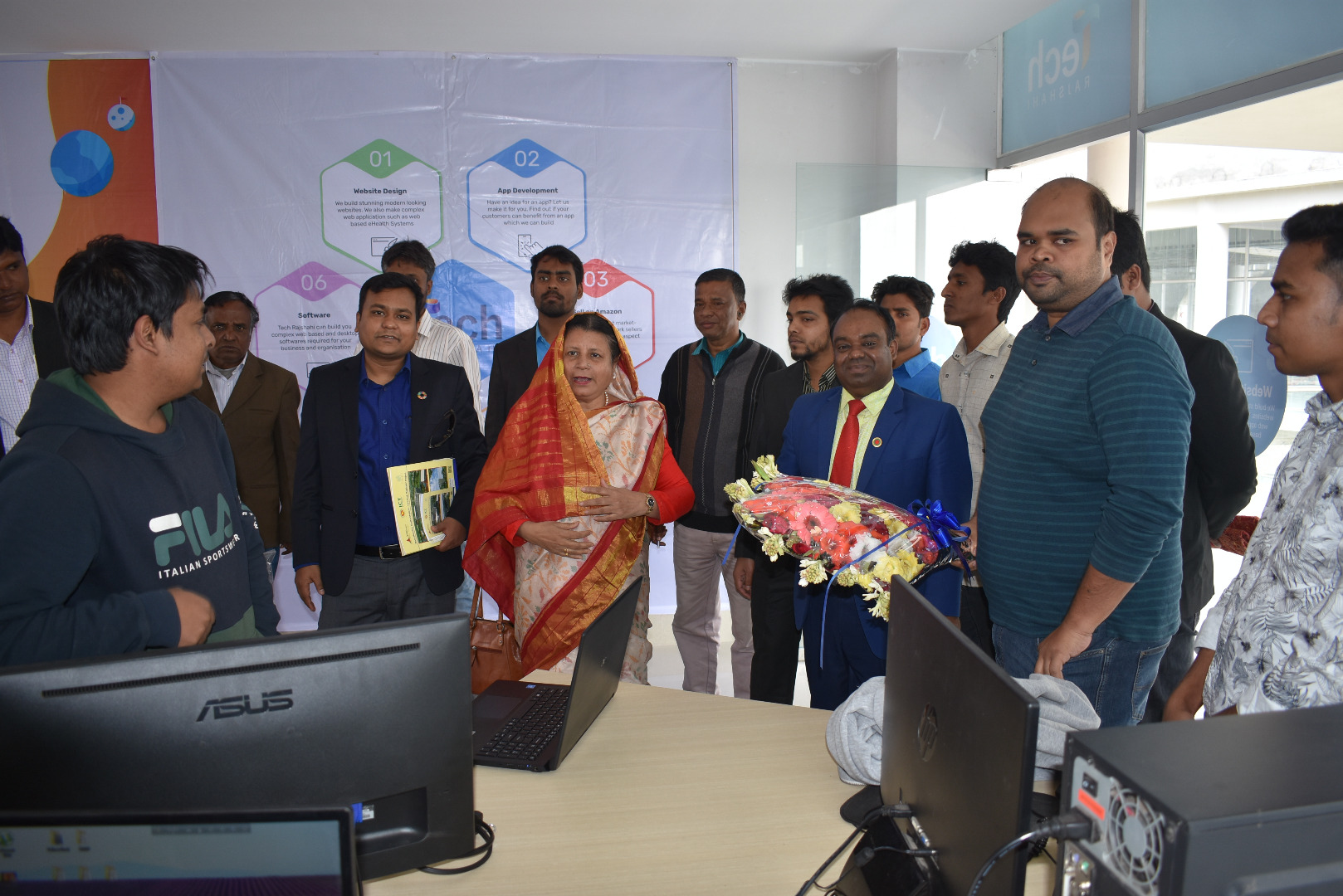 | গত ৫ই জানুয়ারী, ২০১৯ ইং সকাল ১০.৩০ ঘটিকায় আইটি ট্রেনিং এন্ড ইনকিউবেশন সেন্টার, নাটোর এর আওতায় স্টার্টআপদের অফিস পরিদর্শন ও স্টার্টআপদের সাথে মতবিনিময় করা হয়। এছাড়া আইটি ট্রেনিং এন্ড ইনকিউবেশন সেন্টার, প্রকল্পের আওতায় নাটোরে চলমান প্রশিক্ষণ কার্যক্রম পরিদর্শন, প্রশিক্ষণার্থীদের সাথে মতবিনিময় এবং তাদের মাঝে বই, কলম, নোট বুক ও ব্যাগ বিতরণ করেন বাংলাদেশ হাই-টেক পার্কের ব্যবস্থাপনা পরিচালক (সচিব) জনাব হোসনে আরা বেগম এনডিসি। এসময় উপস্থিত ছিলেন নাটোর জেলার জেলা প্রশাসক জনাব মোঃ শাহরিয়াজ, বঙ্গবন্ধু হাই-টেক পার্ক (রাজশাহী) প্রকল্পের প্রকল্প পরিচালক জনাব এ.কে.এ.এম.ফজলুল হক, এডিসি জনাব ডঃ রাজ্জাকুল ইসলাম, গণপূর্ত বিভাগের নির্বাহী প্রকৌশলী জনাব জাহিদুল ইসলাম ও এনডিসি জনাব অনিন্দ্য কুমার, বাংলাদেশ হাই-টেক পার্ক কর্তৃপক্ষের রক্ষণাবেক্ষণ প্রকৌশলী জনাব এস. এম. আল-মামুন সহ অন্যান্য সরকারী কর্মকর্তাবৃন্দ। |