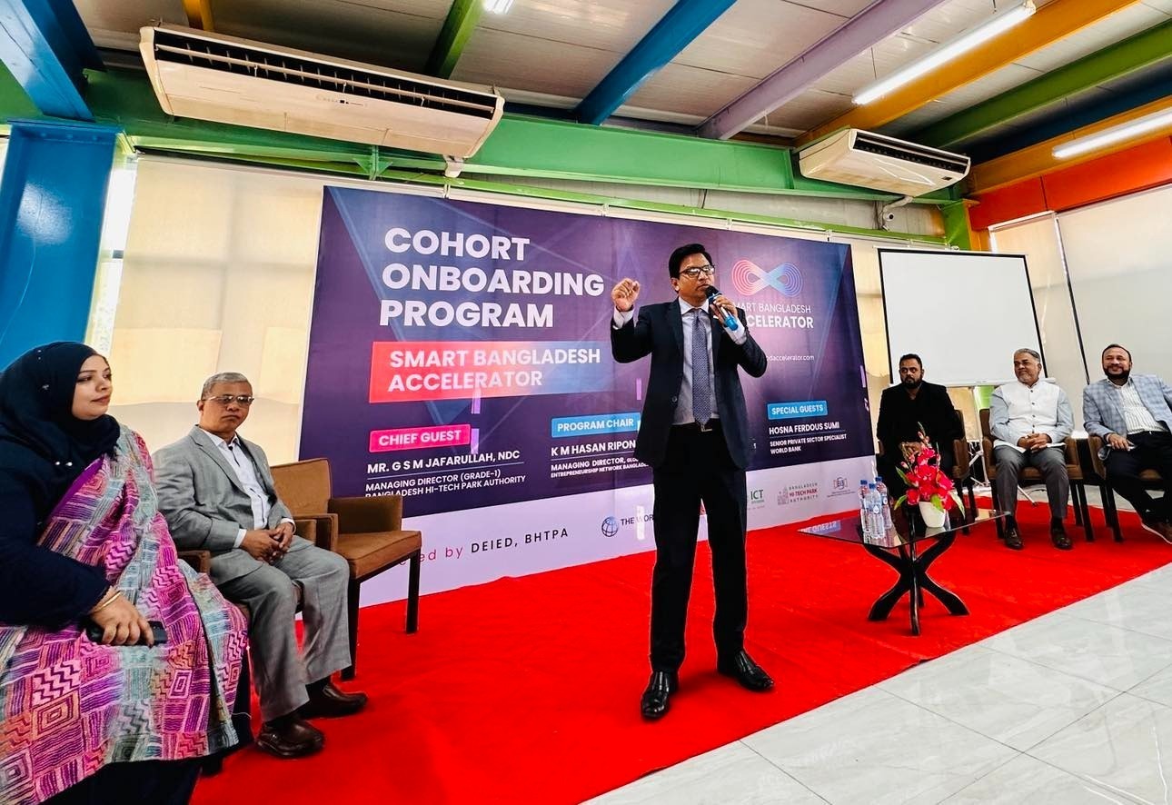 ![]() | নতুন উদ্যোক্তাদের আইডিয়াকে বিকশিত করতে বাংলাদেশ হাই-টেক পার্ক কর্তৃপক্ষের ডিজিটাল উদ্যোক্তা ও উদ্ভাবন ইকোসিস্টেম উন্নয়ন (ডিড) প্রকল্পের অধীনে শুরু হয়েছে স্মার্ট বাংলাদেশ অ্যাকসেলারেটর কার্যক্রম। এই কার্যক্রমের আওতায় গত ২০ জানুয়ারি আইসিটি টাওয়ারে এক অনুষ্ঠানে আরো দুইটি কোহর্ট শুরু হয়েছে। এর মধ্যে একটি কোহট হচ্ছে ইউমেন লিড স্টার্টআপদের নিয়ে। অনুষ্ঠানে প্রধান অতিথি হিসেবে বক্তব্য দেন বাংলাদেশ হাইটেক পার্ক কর্তৃপক্ষের ব্যবস্থাপনা পরিচালক (গ্রেড-১) জনাব জি এস এম জাফরউল্লাহ্, এনডিসি। ডিড প্রকল্পের ভারপ্রাপ্ত প্রকল্প পরিচালক ও জেলা পর্যায়ে আইটি-হাইটেক পার্ক স্থাপন প্রকল্পের (১২ আইটি) প্রকল্প পরিচালক জনাব এ কে এম ফজলুল হকের সভাপতিত্বে অনুষ্ঠানে বক্তব্য দেন ডিড প্রকল্পের ইনোভেশন অ্যান্ড কমার্শিয়ালাইজেশন স্পেশালিস্ট জনাব এ এন এম সফিকুল ইসলাম, এনডিই ইনফ্রাটেক লিমিটেডের চেয়ারম্যান জনাব মাকসুদুল ইসলাম, স্মার্ট বাংলাদেশ এক্সিলারেটর কার্যক্রমের সমন্বয়ক জনাব মো: আরিফুর রহমান। |